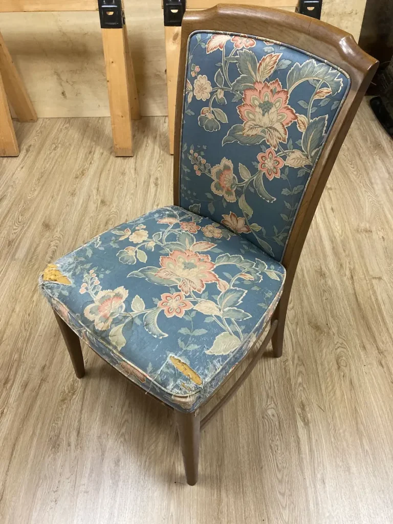 ダイニングチェア 張替え|滋賀県 before after ご依頼内容 生地の破れを奇麗にしてほしい 椅子の種類 ダイニングチェア 台数 1脚 対応方法 工房(持帰り) メーカー カリモク domani 施工内容 ・布地張替え・ウレタン交換・Sバネ補強・縫製 価格目安 1脚のみのご依頼は割増となります。27,000~33,000円(状態・仕様により変わります)+別途生地代金※1 施工内容 モリスの「アイリス」で張替えさせていただきました。1脚からのご依頼にも対応しています。 ※1生地は一定ロットの発注が必要な為、1脚ですと無駄が多く、割高になり易いです。2脚、4脚の偶数が生地の取りが良くが比較的無駄が無いです。参考になさって下さい。 ダイニングチェアの座面破れや張替えをご検討の場合は、写真をお送りいただければお見積りお出し致します。 写真を送って聞いてみる