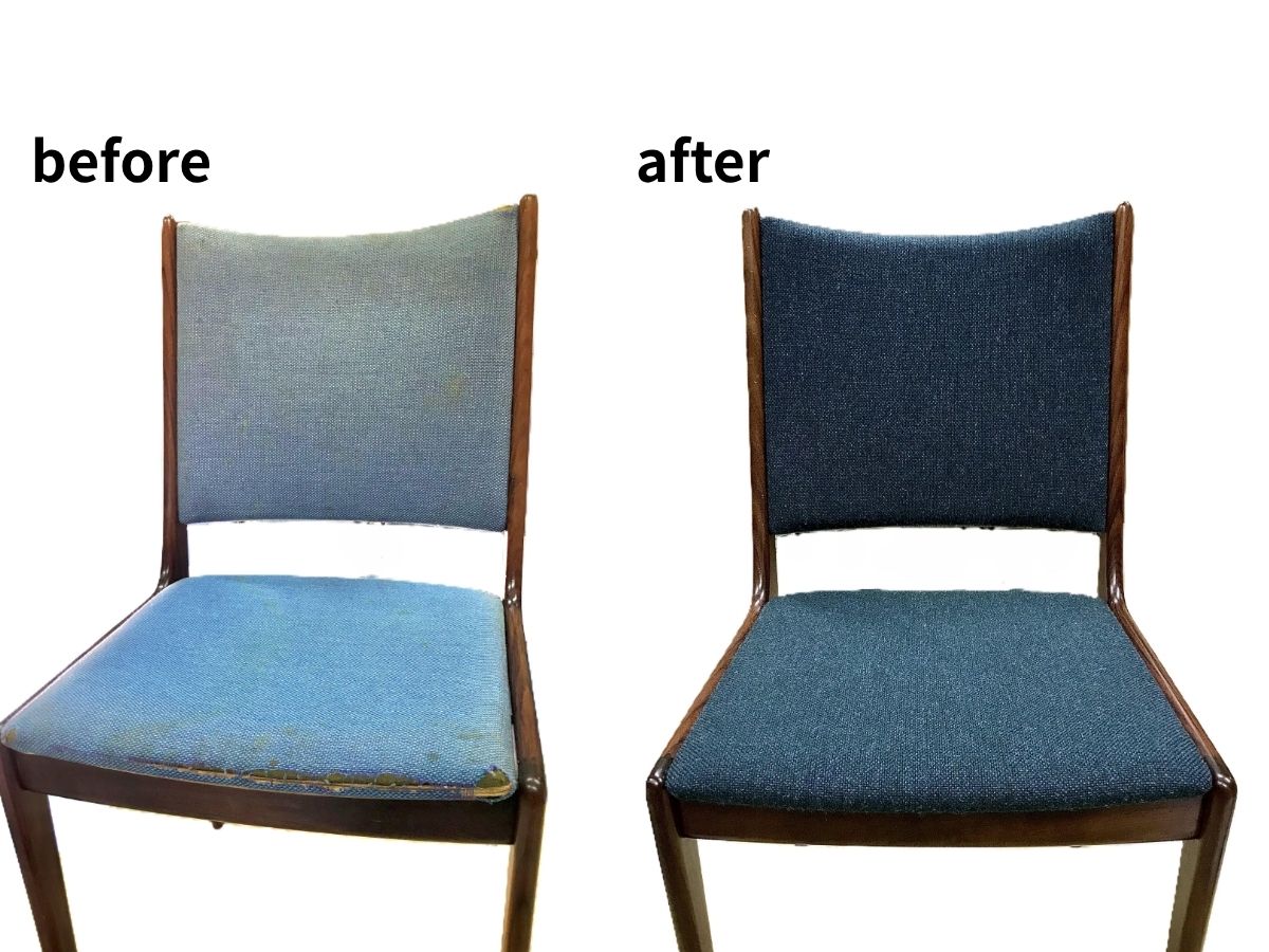 ダイニングチェアの座面・背もたれを張替えさせていただきました。