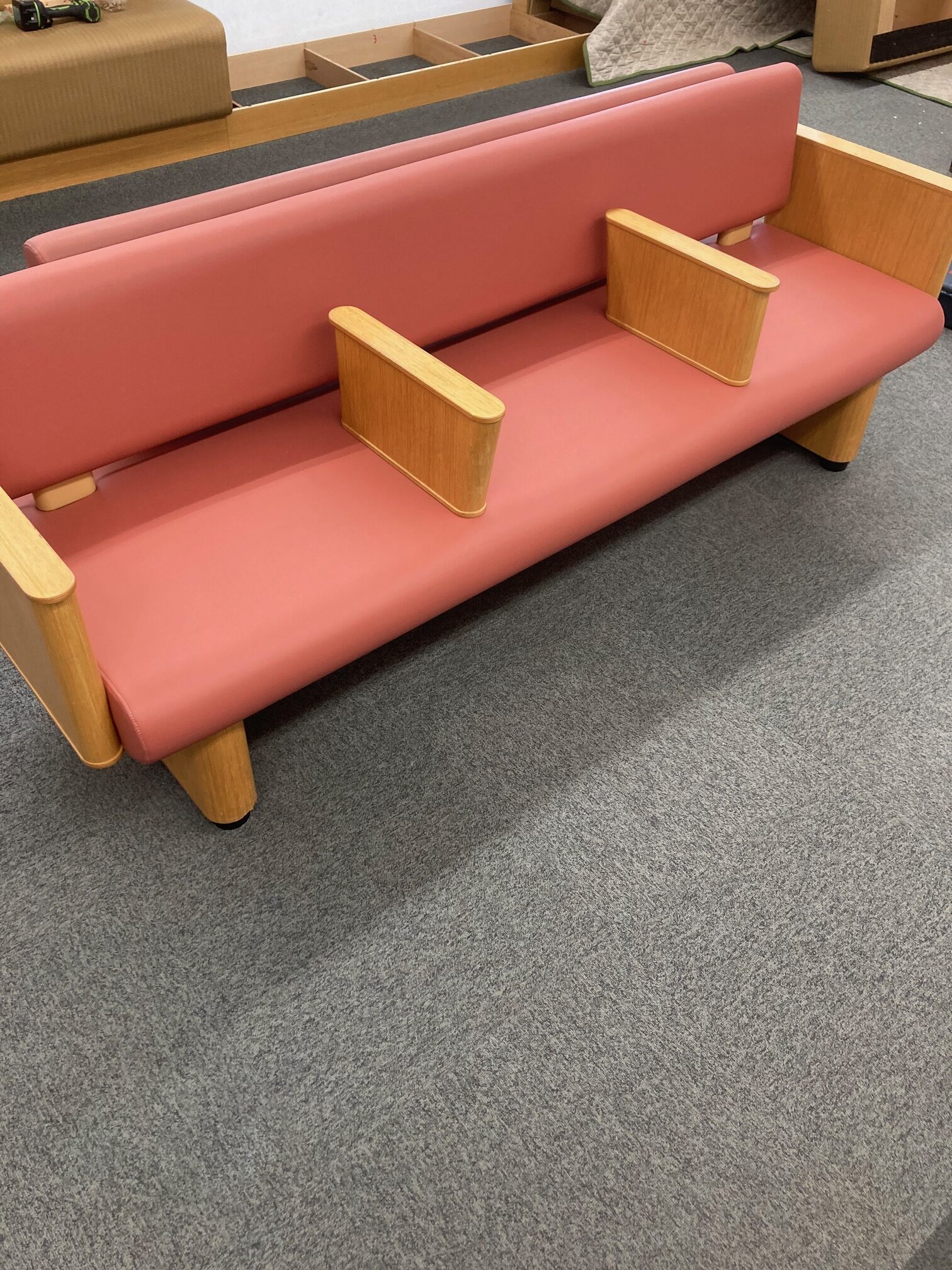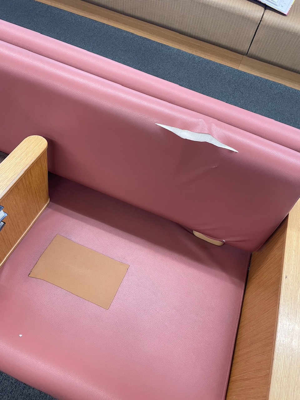 クリニックの待合席張替え before after ご依頼内容 待合スペースのソファの破れが気になるので張替え 椅子の種類 ロビーソファ 台数 2台 対応方法 工房(持帰り)→納品・設置 施工内容 抗菌機能付きのレザーで張り替えました。医療系施設や公共施設など、人の出入りが多い場所では、こうした機能性レザーを選ぶことで、日常のメンテナンス面でも安心感があります。 同じような症状でお困りの場合は、お気軽にご相談ください。写真をお送りいただければ、対応可能かどうかお伝えします。 お問合せはこちら
